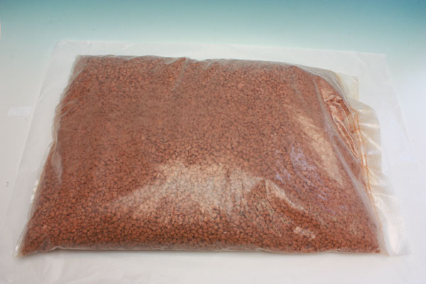 良質焼赤玉1袋中粒15リットル入りの写真です。撮影環境などにより、土の色は、現物と多少異なる場合があります。 微・小・中・大粒の4種類があります。